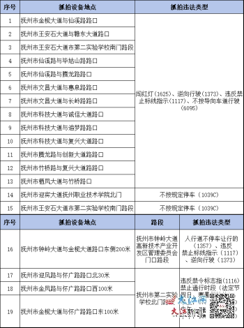 大江网/抚州头条客户端讯 通讯员赵娇静报道:为最大限度预防和减少道路交通事故的发生,提醒广大驾驶人自觉遵守交通法规,文明行车,安全驾驶,确保道路交通有序、安全、畅通,根据《中华人民共和国道路交通安全法》《道路交通安全违法行为处理程序规定》(公安部第157号令)等法律法规,现将抚州市城区道路上新增的19处电子警察设备设置点向社会进行公示。