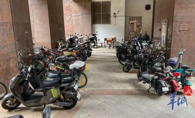 广州珠江俊园小区,停放在架空层的“电鸡”