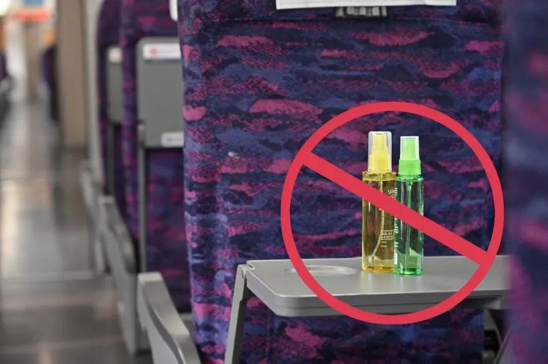 列车上设有多个烟雾报警器,使用香水、发胶、防晒喷雾等物品,易引发烟雾报警,进而造成紧急停车,危及行车安全。
