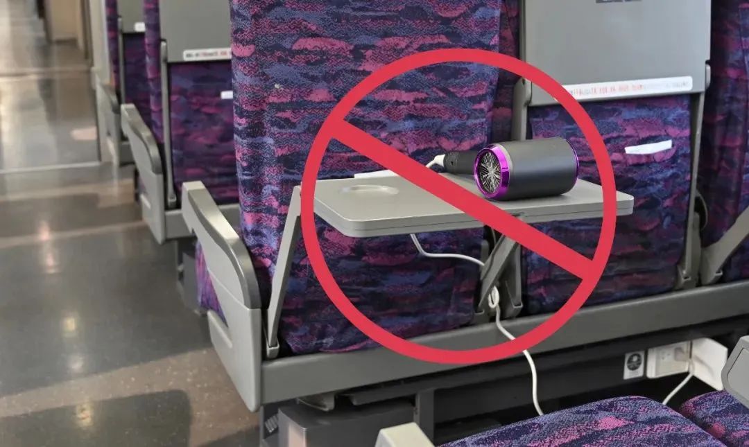 不在列车上私接插线板,不使用吹风机、卷发棒、电饭锅等高功率设备