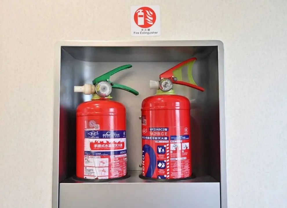 在列车每节车厢的连接处,配备了一组“红绿搭档”的灭火器。绿色的是水基型灭火器,适用于扑灭固体或非水溶性液体的初起火灾;红色的是ABC干粉灭火器,适用于固体、液体或可熔化固体、气体及带电类火灾的扑救。如车厢发生火灾,请冷静配合铁路工作人员疏散通道、传递灭火器。