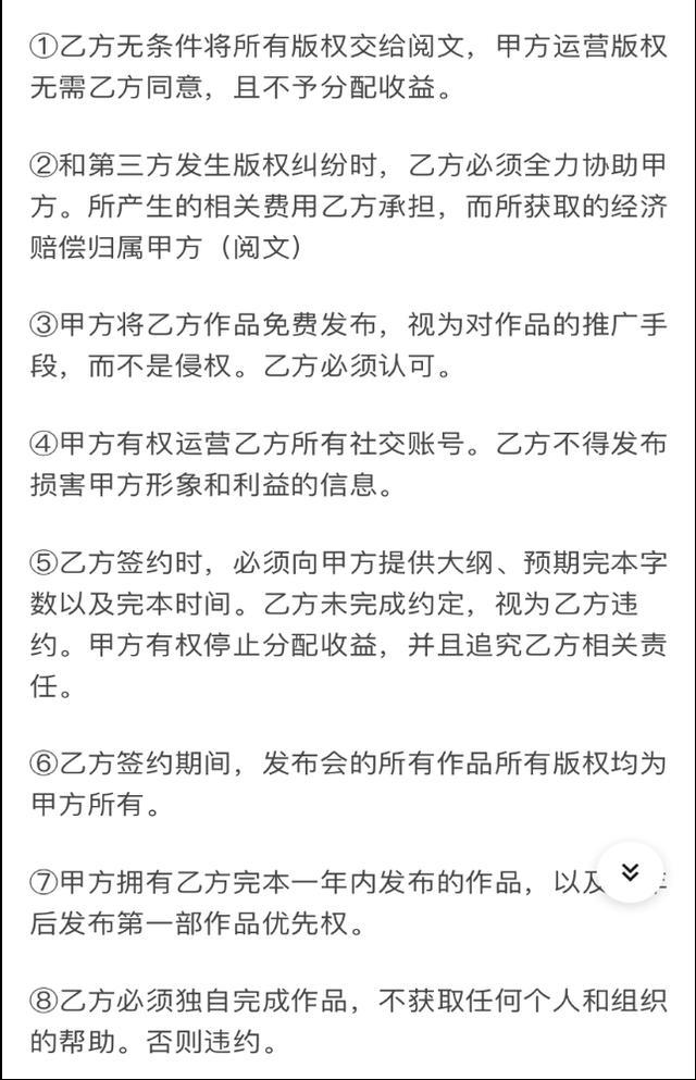 如果说免费模式的推行断了一大批作者的经济命脉,阅文对于作者著作权的剥夺,则是践踏了全体创作者的尊严,也践踏了无数作者的梦想。