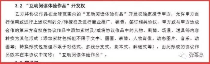 于是,阅文集团在新合同3.2中提出——“互动阅读体验开发”权归甲方所有。
