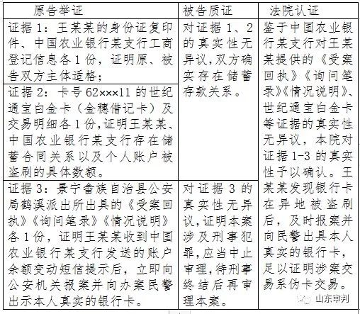 审判实践中,是否存在伪卡交易系处理银行卡盗刷案件首先需要解决的问题。在选取的122份样本中,全部都由持卡人来举证证明是否存在伪卡交易的事实。笔者认为,由持卡人承担举证责任,一方面符合“谁主张、谁举证”民事诉讼的基本举证规则,从而督促持卡人积极搜集、固定相关证据;另一方面,将举证责任赋予持卡人,也有利于防范道德风险的发生。但是,各地法院对持卡人如何证明以及证明到何种程度才能认定伪卡交易在认知上存在较大差异。在案情基本相似、证据基本相同的情形下,有的法院认定系伪卡交易,而有的法院认定非伪卡交易。鉴于此,笔者选取了基层法院审理的3个能够认定存在伪卡交易事实的案例,并通过表格的形式直观展示持卡人提交的证据、发卡行的质证意见以及法院认证事实的过程。