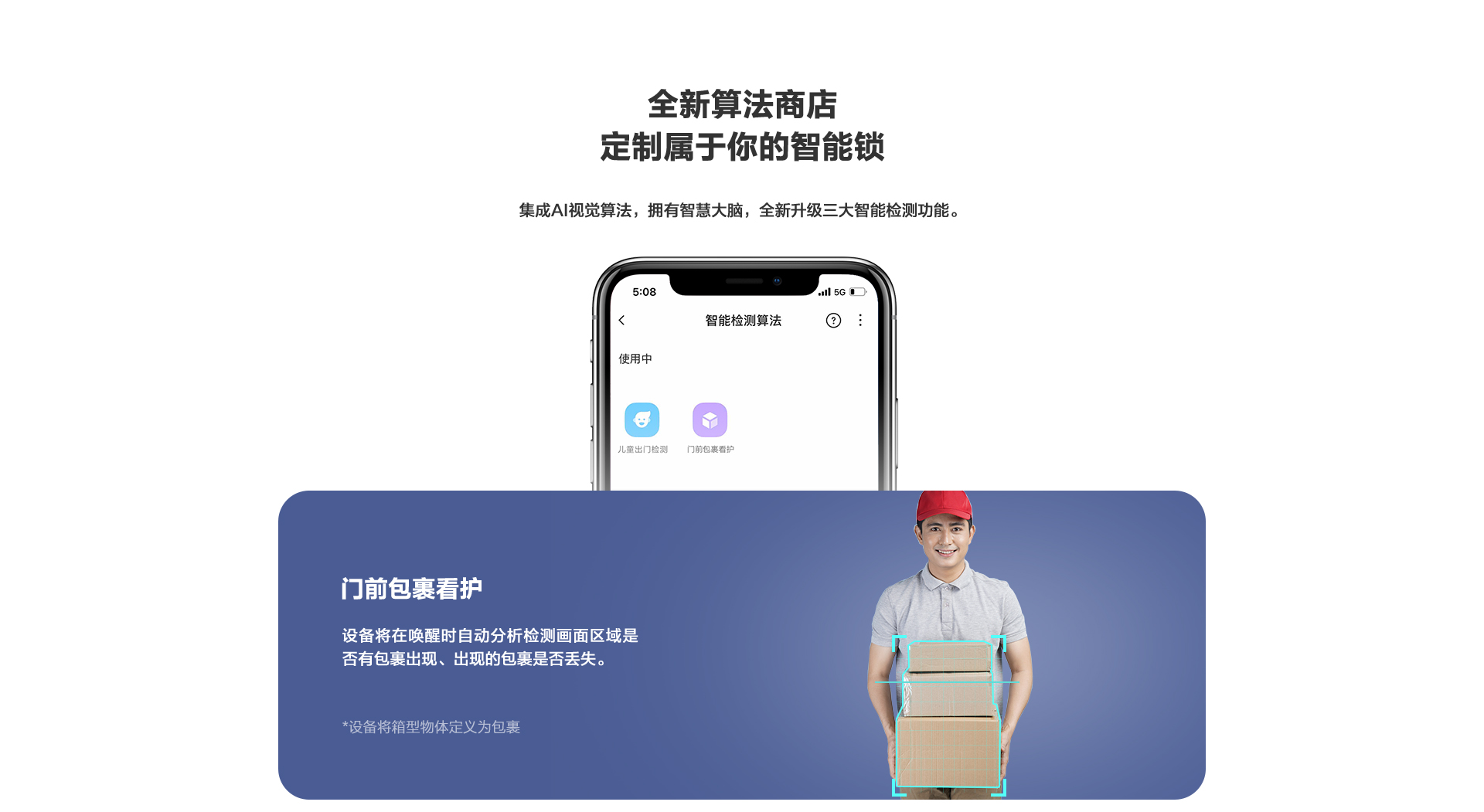 智能算法   支持算法商店,可下载使用包裹看护检测、儿童出门检测