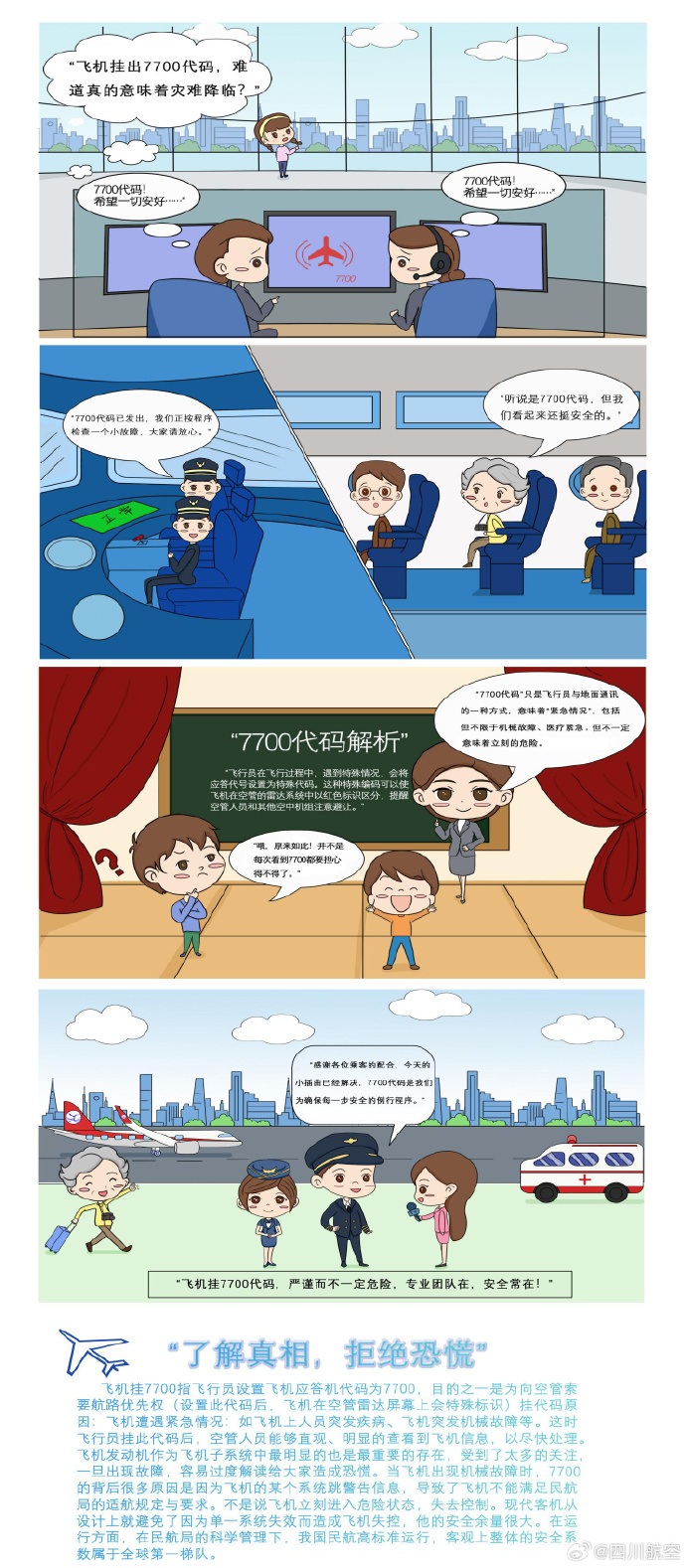 9月22日晚,3U6960舟山-达州-成都天府航班起飞后出现机械故障,机组出于安全考虑挂出7700代码,于19:16备降宁波,后更换飞机继续执行航班任务。该航班已于今日02:37、04:22先后将旅客安全送抵达州和成都。 7700代码是飞行员与地面通讯的一种方式,意味着紧急情况,如机械故障、机上人员突发疾病等,但不一定意味着立刻的危险。飞行员设置飞机应答机代码为7700,目的之一是为向空管寻求航路优先权。