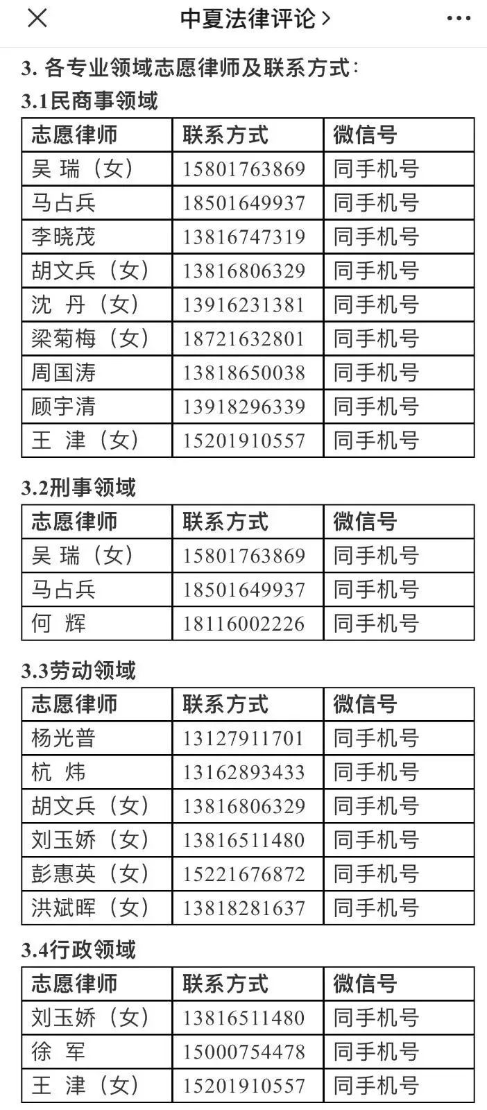 针对突如其来的疫情,中夏所、道朋所、新闵所、融力天闻所、尊源恒所、徐松婷所、恒在所、国瓴所、盈仑所、孜求所、路森所、环琦所等多家律师事务所安排专人接听电话,由业务精的律师热情地为咨询者提供免费法律服务,做到让法律服务不缺位,以实际行动阻击疫情。闵行工会职工维权律师志愿团律师通过值班电话和“12351职工维权热线”,以及闵行“12348”法律咨询热线电话律师团队的律师通过热线等途径提供法律服务,解疑释惑,维护合法权益,化解社会矛盾。