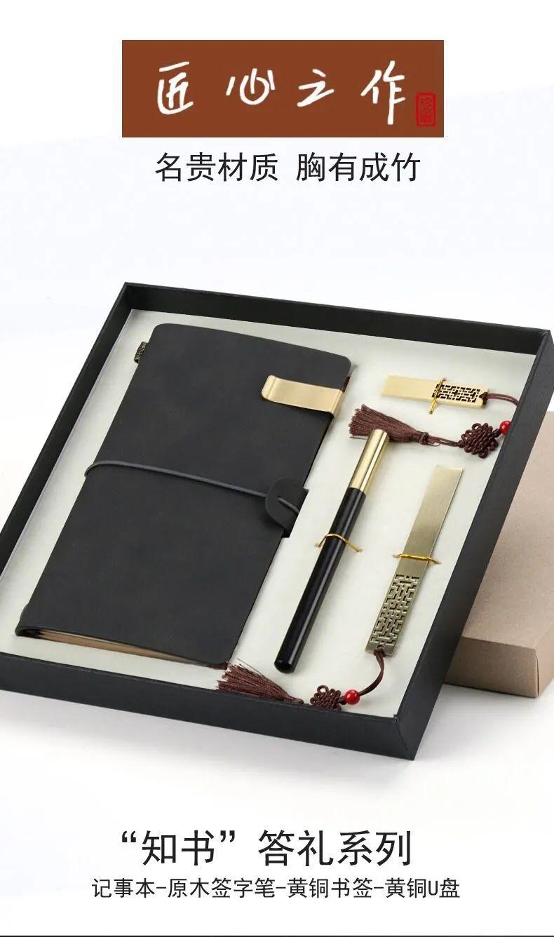 笔记本+楠木笔+U盘+书签“知书答礼”套装