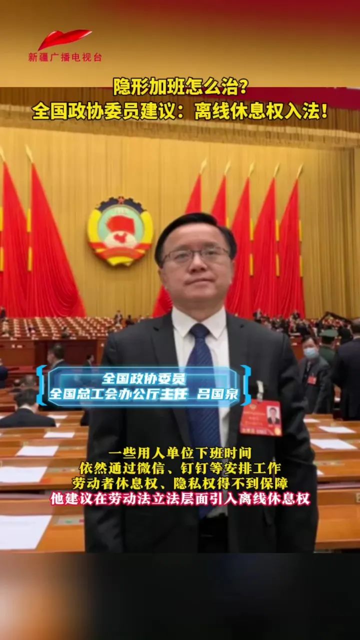 建议将“离线休息权”入法——今年两会期间,全国政协委员、全国总工会办公厅主任吕国泉的这份提案,切中了许多职场人的“痛点”。吕国泉建议,在劳动法立法层面引入离线休息权,指导用人单位在劳动合同中列入界定、补偿离线休息权的条款,约定线上加班补偿标准,提高企业隐形加班的违法成本。