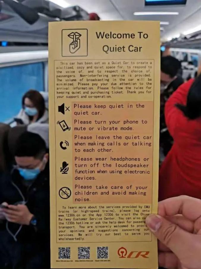 “如果遇到旅客没有遵守静音车厢的约定,我们会半蹲进行劝阻和提醒,列车上也会专门安排两位乘务员,在静音车厢两侧观察里面的情况。”