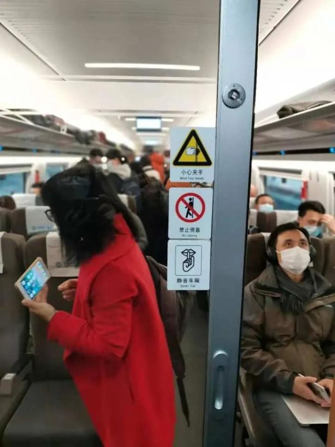 列车沿着京沪高铁,以350公里的时速疾驰。车厢内除了高铁运行时的声音,几乎听不到旅客间的交谈,也听不见接打电话和播放视频的声音。