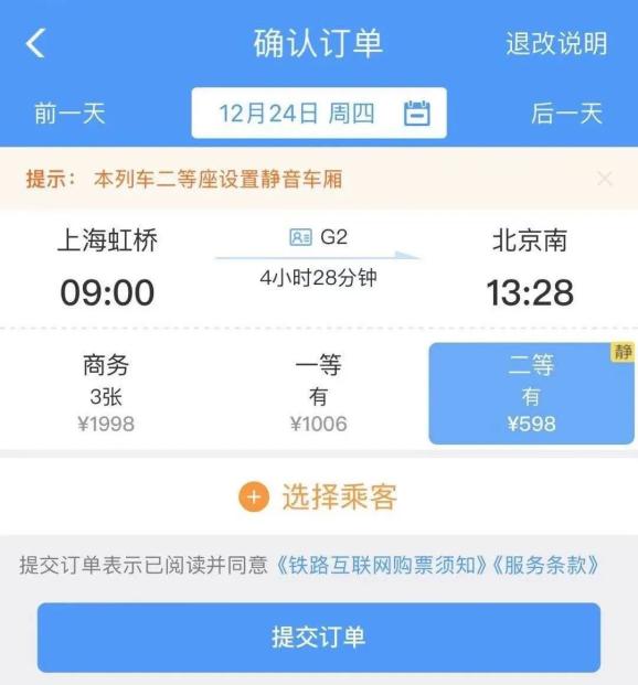 系统特别提示:不建议携婴幼儿乘车的旅客选“静音车厢”。