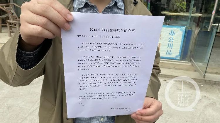 11月12日下午的庭审中,部分未被列为“受害人”的受害学生,向法院提交了一份信件。这份署名为“2015年以前受害同学的心声”中写道,“我们是2015年以前受到梁岗猥亵的受害者,我们并没有做错什么,无所畏惧,敢于对质”。对于“法不溯以往”导致不能出庭指证梁岗,“我们心有不甘,却不得不接受这一现实,不过我们受到的伤害的的确确存在。梁老师犯下的罪行,事件之久,程度之深,罪孽之重,远比起诉书上的要令人感到愤怒,法律不能让他再次逃脱惩罚”。