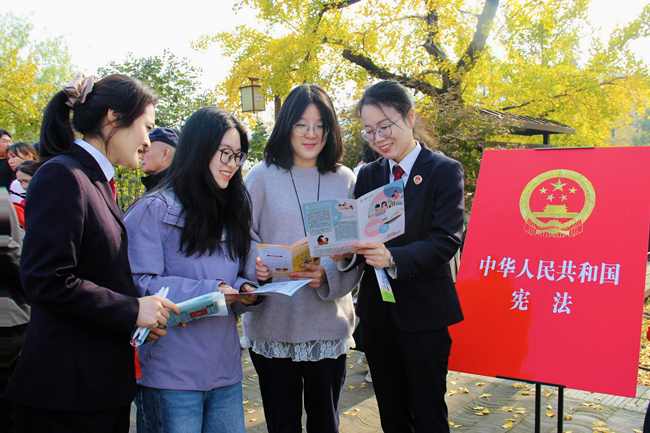 国家宪法日来临之际,浙江省长兴县检察院检察官走进该县小浦镇十里银杏长廊,开展宪法宣传活动。活动中,检察官向群众发放宣传资料,解答群众的法律问题,引导群众树立遇事找法、解决问题靠法的观念。本报记者范跃红 通讯员沈韵卓摄
