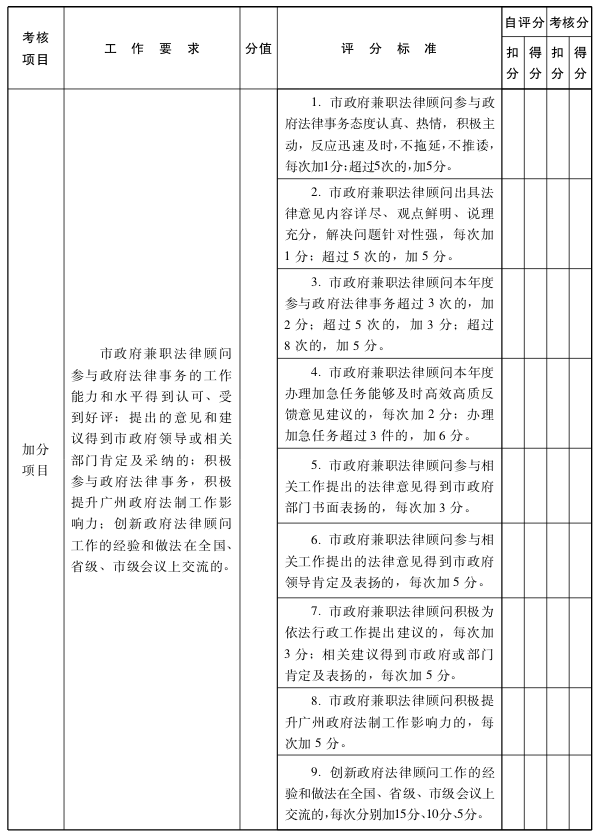 附件:1.广州市人民政府兼职法律顾问年度考核评分细则