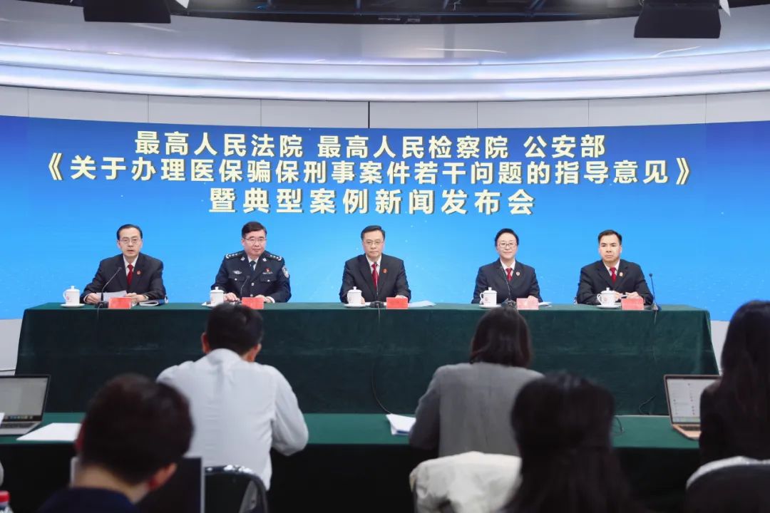 3月1日,最高人民法院、最高人民检察院、公安部联合召开新闻发布会,发布“两高一部”《关于办理医保骗保刑事案件若干问题的指导意见》暨“两高”关于依法惩治医保骗保犯罪典型案例。最高人民法院刑三庭庭长陈鸿翔,最高人民检察院第一检察厅副厅长曹红虹,公安部刑事侦查局副局长、一级巡视员陈士渠,最高人民法院刑三庭副庭长陈学勇出席发布会,并回答记者提问。发布会由最高人民法院新闻局副局长姬忠彪主持。