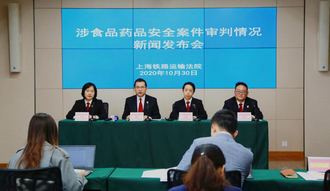 2020年10月30日,上海铁路运输法院召开新闻发布会,对外发布《涉食品药品安全案件审判情况通报》和《上海铁路运输法院涉食品药品安全典型案例》。上铁法院党组成员、副院长俞巍出席发布会并作通报,上铁法院党组成员、综合办公室主任陈雷主持发布会,相关部门负责人回答了记者提问,10余位来自中央新闻单位驻沪机构和本市新闻媒体的记者参与,发布会通过看看新闻网直播。