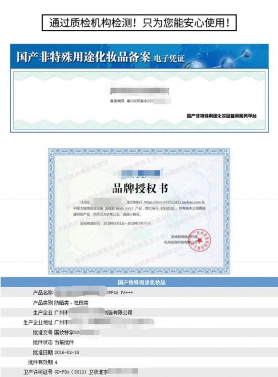 ▲某电商平台部分入驻商家公示的行政备案及品牌授权书