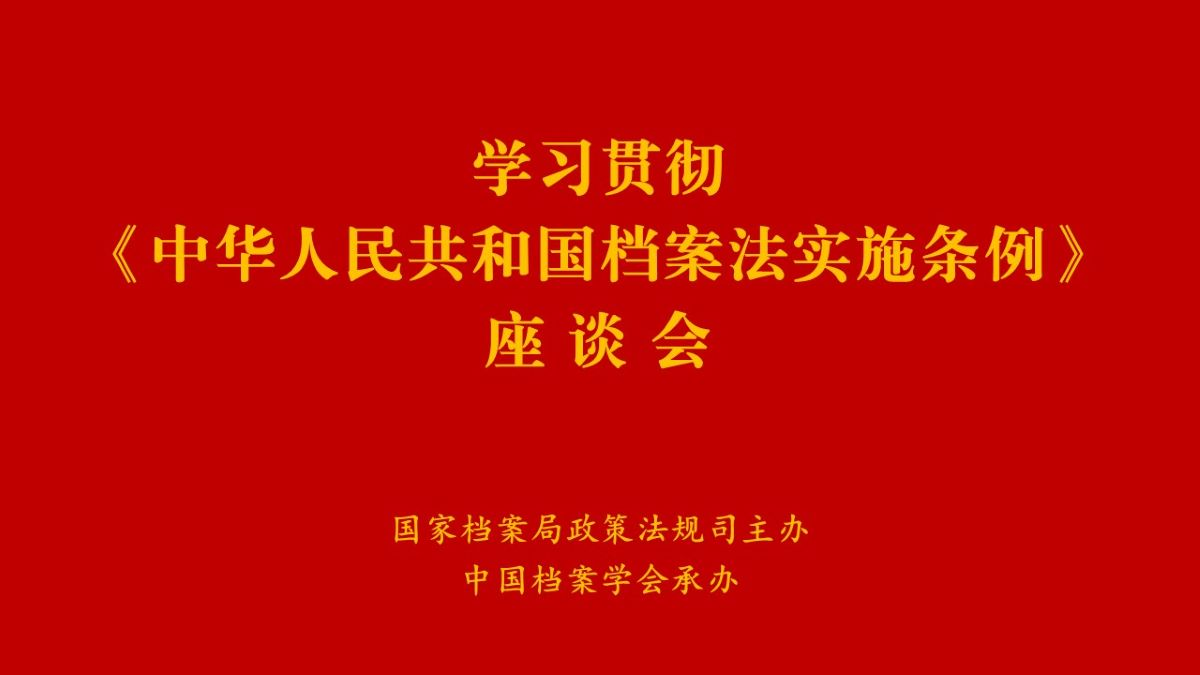 为了做好《实施条例》的宣传贯彻实施,中国档案学会和国家档案局政策法规司联合召开学习贯彻《实施条例》座谈会。我们很高兴邀请到参与《实施条例》修改及有关研讨工作的专家学者参加此次座谈,大家一起深入学习和领会《实施条例》的精神要义,共同理解和把握《实施条例》的丰富内涵,以《实施条例》正式施行为契机,进一步把贯彻实施引向深入。