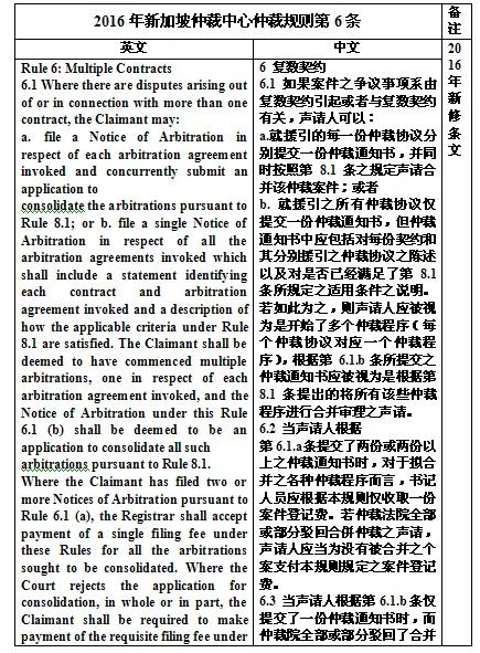 表八:新加坡仲裁仲裁中心复数合同仲裁规则