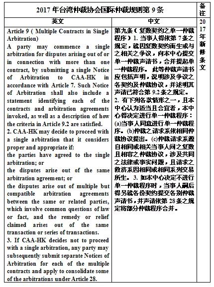 表七:台湾仲裁协会复数合同仲裁规则