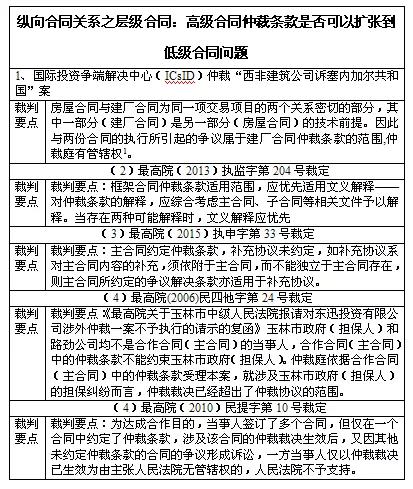 表二:纵向合同关系中层级合同仲裁条款扩张案例