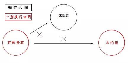 2.主体要件:合同的当事人相同,也即含有仲裁条款的框架合同上签名的当事人同时也是个别合同的签约主体,不涉及第三人;