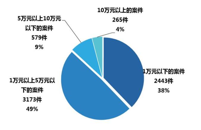 目前,我院受理的涉网络消费者权益保护案件标的总额较大,达3928.06万元,但个案标的额普遍较小。涉案标的额在1万元以下的案件占比38%,最小的标的额仅为8.58元;涉案标的额在1万元以上5万元以下的案件最多,占比49%;仅有4%的案件标的额在10万元以上。此类案件标的额较小主要有两个方面的原因:一是涉诉商品集中在食药领域,单价普遍较低;二是互联网审判模式下消费者维权成本低、维权意识高。我院电子诉讼平台可以实现从起诉、调解、立案、送达,到庭审、判决、上诉、执行等全部诉讼流程节点“上网”和“在线”,当事人“零在途时间”“零差旅费用支出”就可以完成诉讼,大大降低了维权成本。