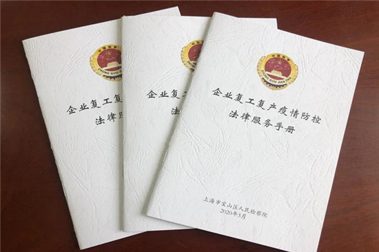 疫情防控期间,宝山区检察院主动履行检察职能,以“有利于疫情控制、有利于复工复产、有利于持续经营”为导向,针对性编写《企业复工复产疫情防控法律服务手册》,积极做好法律风险提示,为企业复工复产保驾护航。