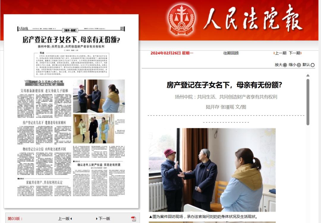 原标题:《媒体聚焦 | 《人民法院报》:房产登记在子女名下,母亲有无份额?》