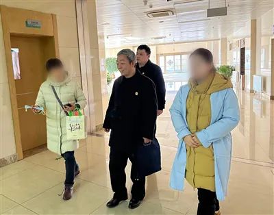 ▲图为案件回访现场,刘奶奶的女儿向承办法官介绍母亲现状。