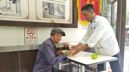 80后退伍军人王晓军了一家小面馆,每天这家小店要免费送出20多碗刀削面,这么多年累计送出8万碗面。“开店第一天起我们就向70岁以上的老人提供免费就餐服务。”王晓军说,很多老人是独居老人,无人照料,能在自己的店里吃上一口免费的热乎饭,老人们特别高兴。
