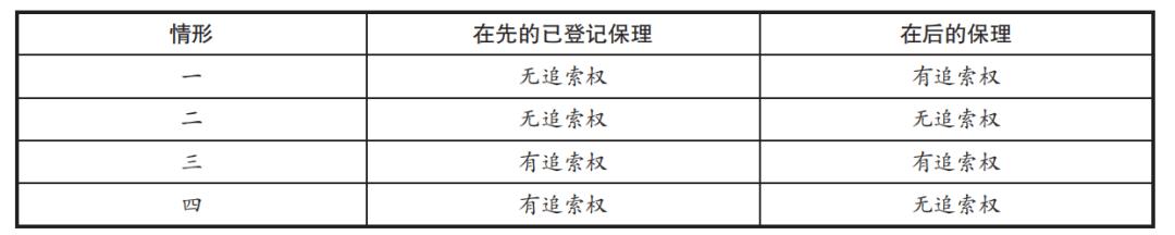 在情形一和情形二下,由于在先的已登记无追索权保理人可以收取全部的保理债权,在后的保理人无论是否与原债权人约定追索权,都无法取得对该债权的权利,更无法实际受偿。并且,情形二实际并不存在,因为无追索权保理人均旨在取得保理债权,属于民法典第768条的射程范围,二者无受偿顺位问题。