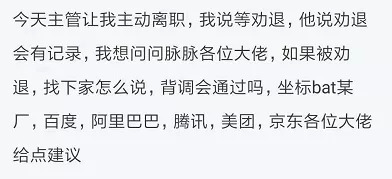 总而言之,别听吓唬,主动离职是不可能主动离职的,老油条们大多是一边等劝退,一边面试,offer到手,啥都好说。
