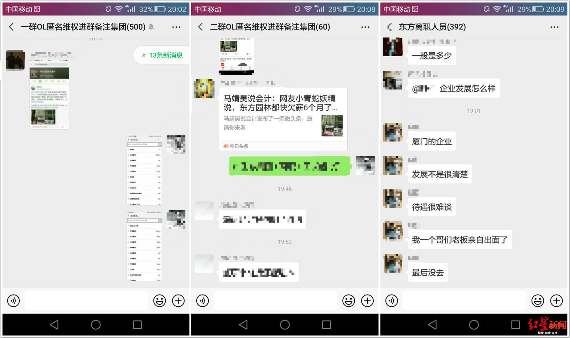 随后记者联系到了一位李姓女士,她说自己是东方园林投资总监,李女士说他加了几个讨薪群,一群里头500人都满了,全部都是欠薪的。二群里面也有60多个人,例外还有一个东方园林离职人员群,有392人,李女士说,这392人都是曾经欠过薪的,这里有些人经过不断的声讨,包括到公司去示威闹事,找领导,就是说硬性谈判等,有一些人呢,已经拿到钱了,所以目前这392人不是全部欠薪,有一部分人已经拿到钱了,但是究竟有多少人拿到钱了,这个现在没法统计。