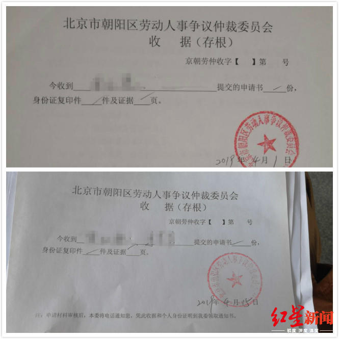 随后李女士向记者提供了北京市朝阳区劳动人事争议仲裁委员会的收据。