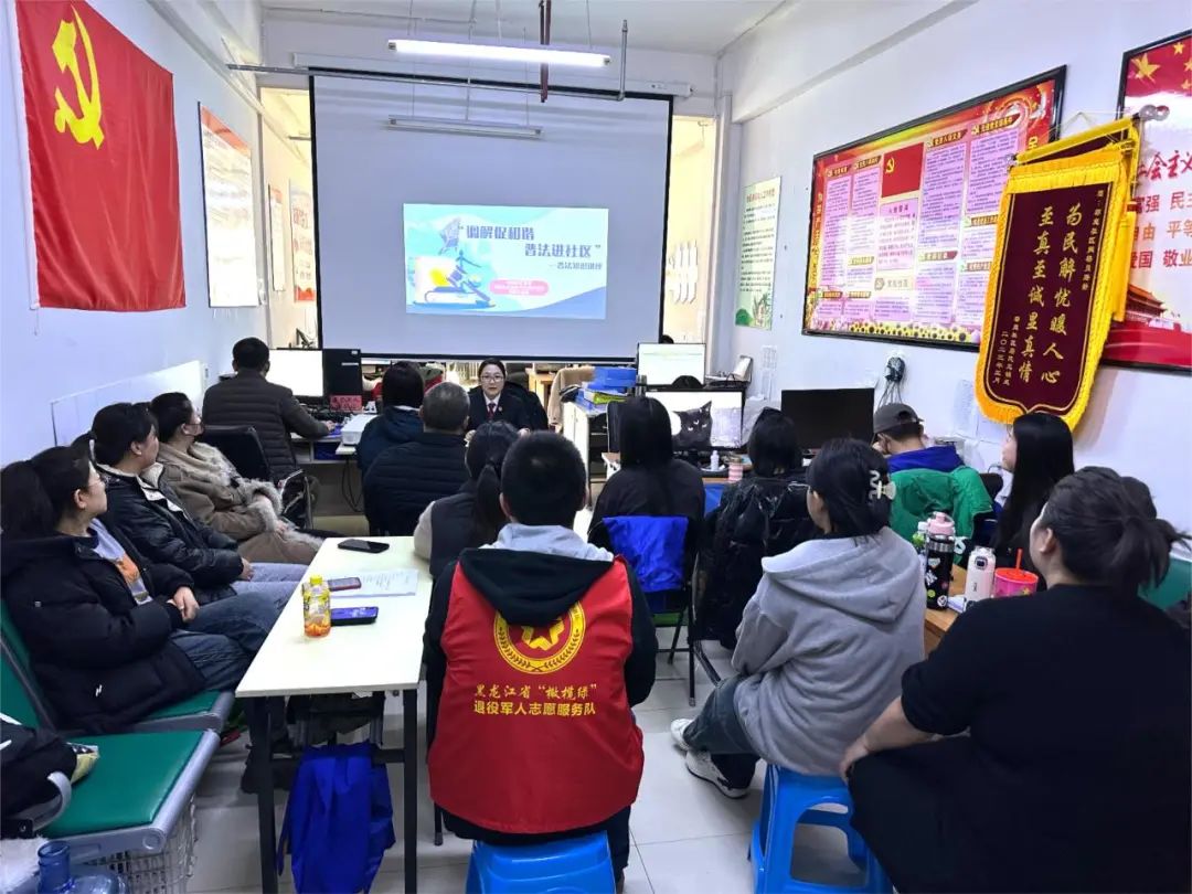 阳春三月,春暖花开。在第114个“三八”国际妇女节到来之际,2024年3月7日,大庆高新区法院第一党支部、民事审判庭女法官迟雪莲来到龙凤区黎明街道郡庭社区,为社区女工作人员及群众开展普法活动,赋予“她”力量,提升“她”维权意识和自我保护能力。