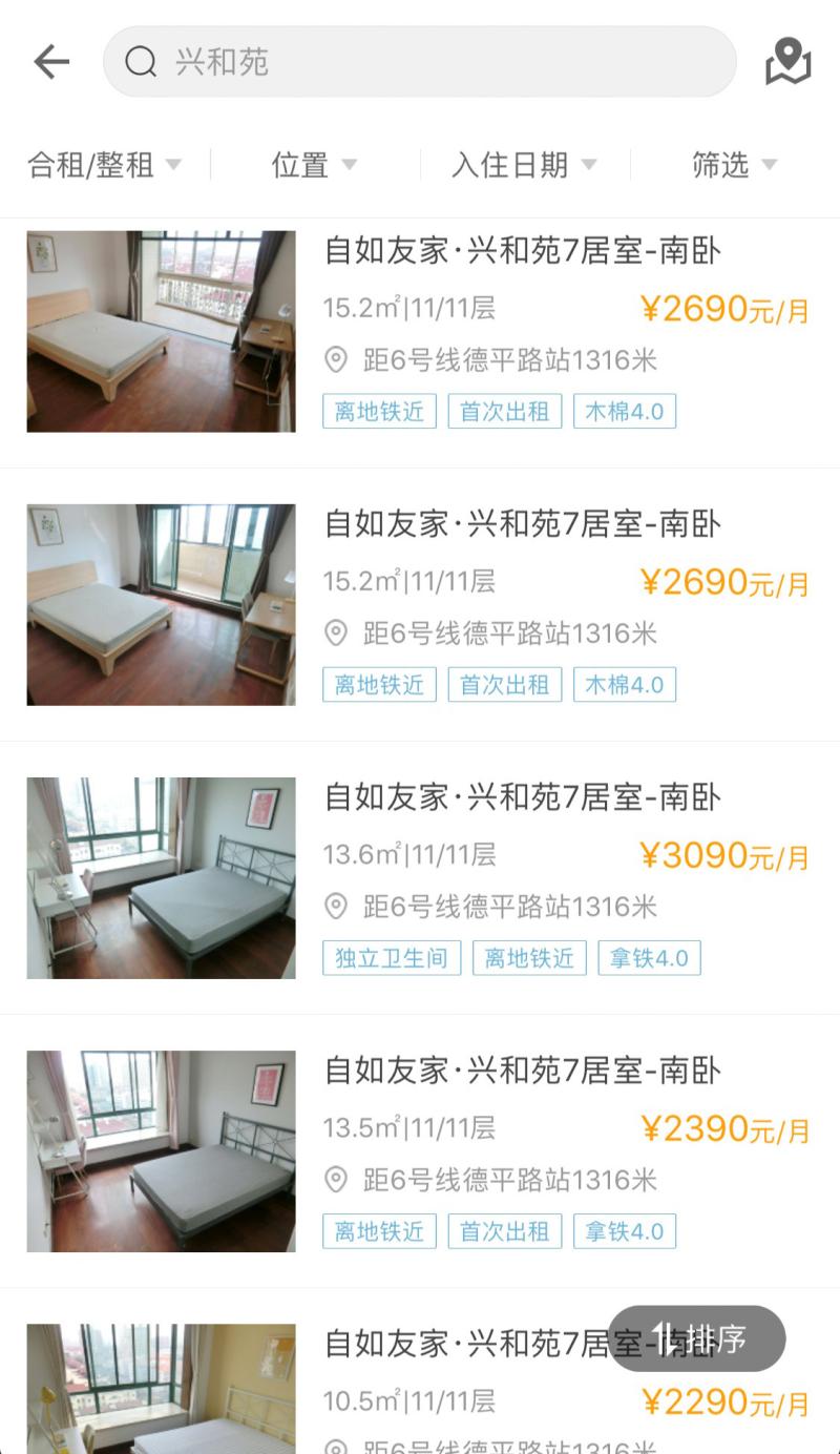 自如APP中,兴和苑的这套复式房变成了7间供出租。