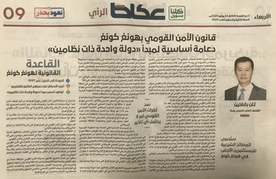 驻吉达总领事谭邦林就香港国安立法在沙特主流媒体《欧卡兹报》发表署名文章