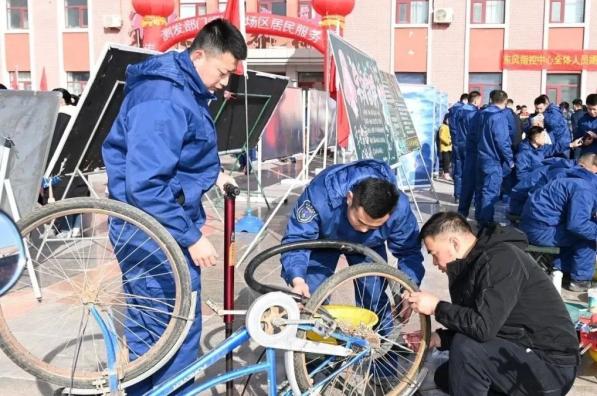 “今天参加学雷锋活动,我是专门修理自行车的一些简单问题,活动刚开始一个多小时就有10多辆自行车来我们这里进行修理。遇到我自己处理不了的,就会有老同志来帮忙,我也在学习,以此来增长自己的修理技能。”应急抢修与运输分队的陈中原,去年第一次参加学雷锋活动时因为技艺不熟只能帮忙递个东西,今年则是积极参与到修理一线当中。“今年的活动我们单位还推出架子鼓与歌唱表演,让学雷锋活动不仅仅局限于帮助居民修理日常用品,还给居民带来欢乐,这其实也是一种助人行为,为大家带来欢乐。让大家在这个活动有更多的选择,这不就是新时代的雷锋吗?”修理好东西后,对方一声声的感谢,让陈中原充满服务热情,即使在春寒料峭的情况下依然感到暖意融融。