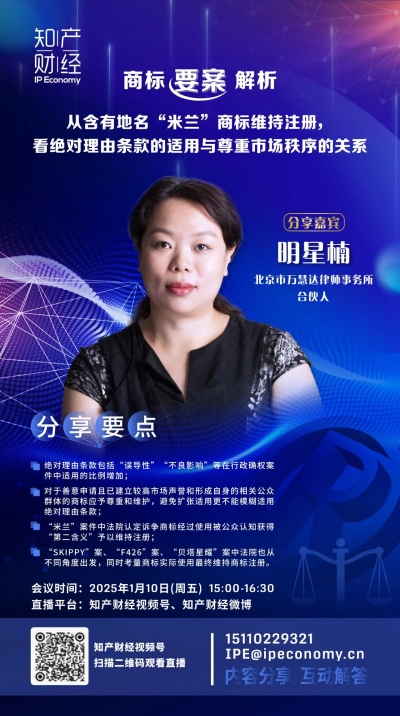 分享主题:从含有地名“米兰”商标维持注册,看绝对理由条款的适用与尊重市场秩序的关系