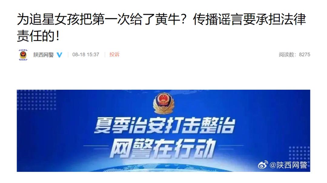 原标题:《为追星女孩把第一次给了黄牛?陕西警方辟谣》