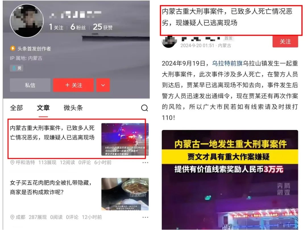 经查,网民刘某某为博取眼球蹭热度,将乌拉特前旗公安局发布的协查通报内容夸大,配上文字信息制作成虚假信息并发布在某网络平台。该信息发布后,引发部分网民关注,造成不良社会影响。目前,公安机关已依法对刘某某予以行政处罚,并责令其删除相关信息。