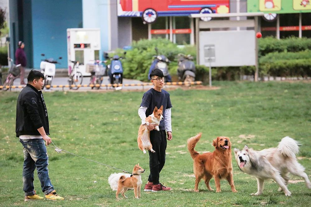 北京朝阳区一处大草坪,狗狗在玩耍。在北京,类似的宠物友好场地并不多(视觉中国 供图)