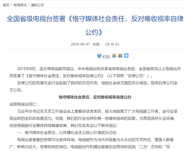 《每日经济新闻》记者注意到,2015年8月,由广播电视总局电视剧司倡议,中央电视台和多家省级电视台发起,全国省级以上电视台共同签署了《恪守媒体社会责任,反对唯收视率自律公约》,其中倡议“电视剧购播工作……不搞唯收视率论,更不能搞以收视率定价。我们承诺:自本公约发布之日起,在电视台购销合同中不签订以收视率和以收视率排名定价、议价的条款。”