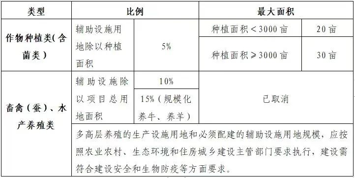 对于农业生产中直接用于作物种植和畜禽水产养殖的设施用地规模,其中国家已颁布行业标准的,按照行业标准执行;未颁布行业标准的按照下列原则执行: