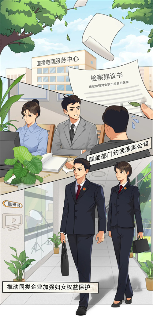 如今,常熟市检察院在直播电商服务中心设立了企检服务中心,制定妇女劳动权益清单,并将每年3月定为女职工保护月,定期开展法治宣传。此外,常熟市检察院与市总工会建立线索移送、信息共享、办案协作等配合机制,并在市总工会文化宫挂牌“新业态劳动者权益保障‘法治会客厅’”维权阵地,常态化提供法律援助、帮扶救助及心理疏导等服务。(文/戴佳)