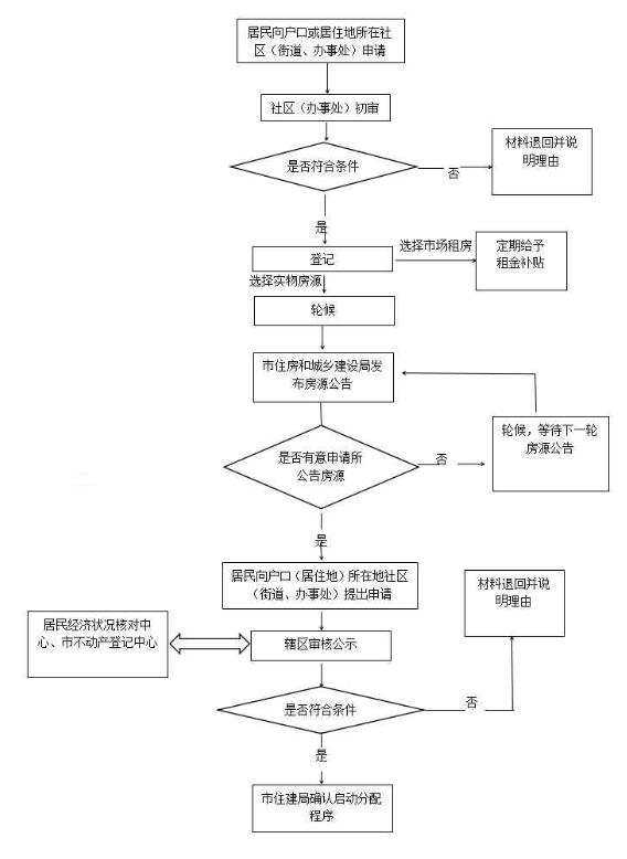 (一)面向社会供应的保障房,申请人在户口或居住地所在社区(街道、办事处)申请登记,具体审核程序为:
