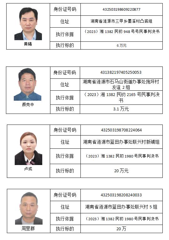 我为群众办实事丨涟源法院发布2024年第二批失信被执行人名单