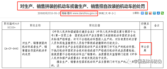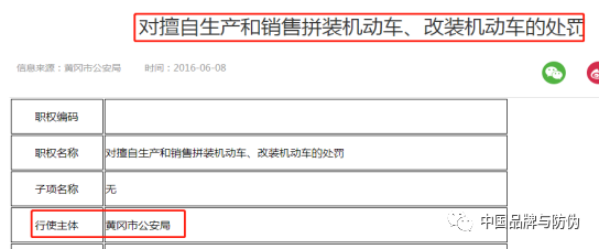 另外,目前国内也有部分地区直接将“生产、销售擅自改装的机动车”的查处职权明确划给了公安部门,如湖北省黄冈市、海南省儋州市等。如下例: